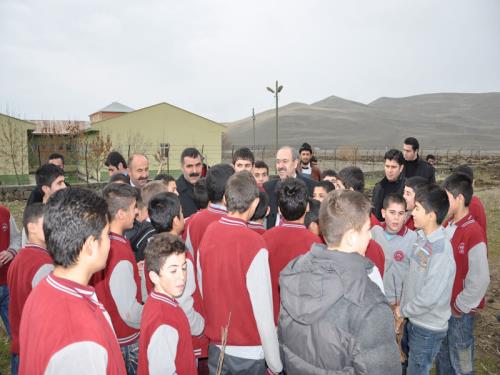 Muş Valisi Vedat Büyükersoy, Korkut İlçesinde Kümbet Yunus Emre Yatılı Orta Okulu öğrencileri ile birlikte fidan dikti