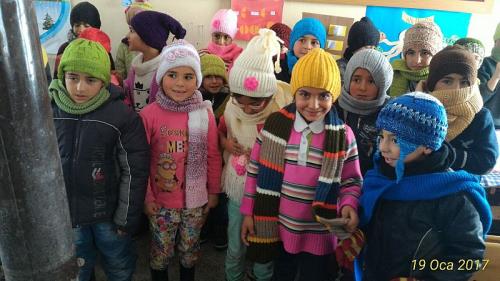 Muş Alparslan Üniversitesi Hayırda Buluşanlar Topluluğu Karabey köyü ve Düz Karabey Köyü İlkokullarındaki 98 öğrenciye atkı, bere, eldiven dağıttılar.