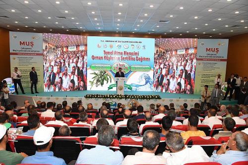Belediye Başkanı Feyat Asya, Orman ve Su İşleri Bakanı Veysel Eroğlu`nun katılımı ile gerçekleştirilen temel atma töreni ve orman köylerine sertifika dağıtım törenine katıldı. Muş Ticaret ve Sanayi Odası Konferans salonunda düzenlenen toplantının açılış konuşmasını Başkan Asya yaptı. Başkan Asya konuşmasında şu ifadelere yer verdi: "Teşrifleri ile bugün bizleri şereflendiren ve her seferinde ağırlamaktan gurur duyduğumuz Orman ve Su İşleri Bakanımız, abimiz, büyüğümüz Sayın Prof. Dr. Veysel Eroğlu’na ziyaretlerinden dolayı sonsuz şükranlarımı sunarak konuşmama başlamak istiyorum. Sayın Bakanım, bizim için çok kıymetli olduğunuzu bilmenizi isterim. Sizler, yaptıklarınızla ülkemizin geleceğine yön verirken, bizler de bunları örnek alarak kendi yerelimizde hizmet sunmaya çalışıyoruz. Türkiye’nin gıpta ile bakılacak bir ülke konumuna gelmesindeki en büyük etken sizler gibi hizmet aşkını yürekten hisseden ve işinin ehli devlet büyüklerimiz sayesindedir. Bizler sizlerden aldığımız destekle halkımıza vaatlerde bulunuyor, hizmetkarlık ediyoruz. İlimize yapılan yatırımlarda katkınız çoktur. Özellikle Muş’un yüz yıllık içme suyu sorununun çözüme kavuşturulmasındaki destekleriniz, bizleri inanılmaz mutlu etmiştir. Bu sayede başımız dik bir şekilde halkımızın huzuruna çıkabiliyoruz. Sizlerin talimatları doğrultusunda Alparslan 2 barajından ilimize cazibeli içme suyunun gelecek olması ile bizim ve halkımızın gönlüne taht kurdunuz. Biz kez daha desteklerinizden dolayı zatıalinize ve ekibinize şükranlarımı arz ediyorum.”