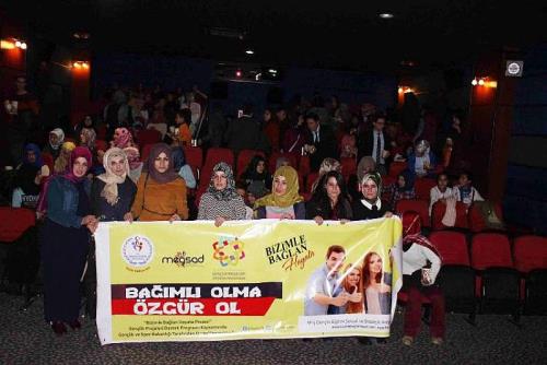 Seminerler ve etkinlikler kapsamında belki de sinemayla ilk kez tanışan öğrencilerin olduğunu ifade eden Eyin, “100 öğrenciyi bugün proje kapsamında sinemaya getirdik. Daha çok öğrenci ve gençlere ulaşmayı hedefliyoruz. Projemizin asıl amacında gençlerimize yönelik bağımlılığı önleyici eğitimler ve bağımlılıktan kurtulma eğitimleri verilerek, gençlerimizin sosyal kültürel ve sporsal etkinliklerle buluşturup öncelikle kendilerine ve silsile halinde ailesine, çevresine ve toplumuna yararlı birer birey olmalarında ön adım olabilmektir. Sinema etkinliğimiz bu projenin bir ayağıdır. Sinema salonunda film izleme zevkini yaşamamış, ilçemizden getirdiğimiz kızlarımızı sinemayla buluşturduk. Çok güzel bir etkinlik oldu, kızlarımız çok heyecanlıydılar. En azından bu tür kültürel etkinliklere katılımlarını sağladık. Projenin devamında da yürütmüş olduğumuz eğitim ve seminerlerimizle de gençlerimizle sürekli çalışmalar yaparak toplumda bir farkındalık oluşturmayı amaçlıyoruz” şeklinde konuştu.