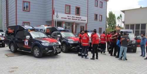 Van, Hakkari, Muş, Bitlis ve Ağrı`dan 14 kişilik gönüllü UMKE personeli, Afrin`e uğurlandı.