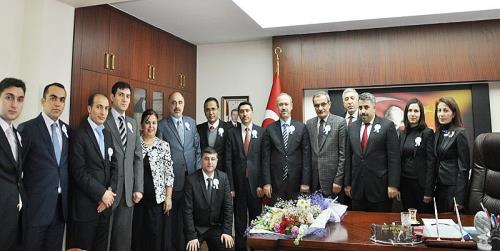 Muş Valisi Vedat Büyükersoy, 23 Şubat-1 Mart 2015 tarihleri arasında kutlanan 26. Vergi Haftası kutlamaları çerçevesinde İl Defterdarı Mustafa Yumuşak ve beraberindekileri makamında kabul etti