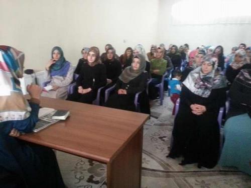 Muş Özgür-Der`in seminerleri kapsamında bu hafta ‘Müslüman Kadın Nasıl olmalı’ konusu işlendi. Sunumu Has-Der Yönetim Kurulu Üyesi Zeliha Kartal, gerçekleştirdi. Kur’an-ı kerim tilaveti ile başlayan Kartal, ayet ve hadislerden örnekler vererek konuşmasına başladı. Kadınların giyim ve takvasına değinen Kartal, “Kadının yaratılışı ve sorumluluğu kulluğunun gereğidir. Hiç şüphesiz, Müslüman erkekler ve Müslüman kadınlar, mü`min olan erkekler ve mü`min olan kadınlar, gönülden (Allah`a) itaat eden erkekler ve gönülden (Allah`a) itaat eden kadınlar, sadık olan erkekler ve sadık olan kadınlar, sabreden erkekler ve sabreden kadınlar, saygıyla (Allah`tan) korkan erkekler ve saygıyla (Allah`tan) korkan kadınlar, sadaka veren erkekler ve sadaka veren kadınlar, oruç tutan erkekler, kadınlar ve ırzlarını koruyan erkekler ve (ırzlarını) koruyan kadınlar, Allah`ı çokça zikreden erkekler ve (Allah`ı çokça) zikreden kadınlar, (işte) bunlar için Allah bir bağışlanma ve büyük bir ecir hazırlamıştır. (Ahzab 35) ayetini dikkate almalıyız. Ayrıca, Araf 26, Hac 37,Bakara 177 âyetleri tesettürün giyilen kumaştan önce, takva elbisesinin bilinç kuşanmak olduğu ile ilgilidir” dedi.