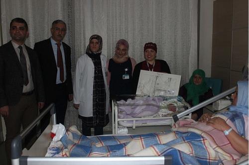 Yeni doğan bebekleri ve ailelerini ziyaret eden Devlet Hastanesi Başhekimi Radyoloji Uzmanı Dr. Gürkan Danışman ile Hastane Müdürü Oktay Turan, bebeklere çeşitli hediyeler verdi.
