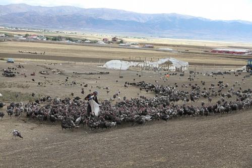 Hindi bakımının çok rahat olduğunun altını çizen Erkan Çelik ise “Muş Nadaslık köyünde oturuyorum. Kendimiz hindicilik yapıyoruz, yaklaşık 3 bin tane hindimiz vardı. Bahar ayından buyana 5 aylık süreç içinde 500 taneye yakın hindimiz tilkiler tarafından telef oldu, geriye kalan 2500 tane hindimiz kaldı. Gerçekten bakımı çok rahat biz kendimiz, Muş organik arpa ve buğday karışımı veriyoruz yemliğini. Ovamız geniştir o yüzden herhangi bir sıkıntımız yoktur” dedi.