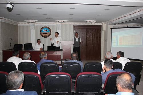 Muş Esnaf ve Sanatkarlar Odası konferans salonunda katılımcılara; tarım sigortaları (TARSİM), bitkisel üretimde verimlilik, kalitenin arttırılması, bitki yetiştiriciliği ve bitki sağlığı, gübre kullanımı, zirai ilaçların kullanımı, kırsal kalkınma yatırımları, 2017 yılında uygulanacak desteklemeler, toprak numunesi alma, toprak analizin önemi, çiftçi kayıt sistemi (ÇKS) ve çiftlik muhasebe veri ağı (ÇMVA), konularında İl Müdürlüğümüz Teknik Personellerinden Ziraat Mühendisi Gökhan Karasu. Bölgede yapılan hayvan yetiştiriciliği, hayvan bakımı, beslenme, hastalıklar, aşılama ve küpelemenin önemi, büyük ve küçükbaş hayvan varlığı, hayvancılıkta desteklemeden yararlanmanın şartları, uygulanan aşı çeşitleri ve sürü yönetimi elemanı benim projesi (Çobanlık) sertifikası konularında ise İl Müdürlüğümüz Sağlık Personellerinden Veteriner Hekim Mustafa Mehmet Lale tarafından sunum yapıldı.