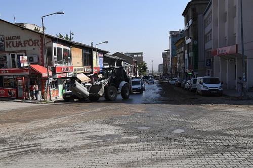 Alt yapı projesi kapsamında İstasyon Caddesindeki kazı ve döşeme çalışmaları devam ediyor. Muş Belediyesi ekipleri caddenin sağ şeridini geçici asfalt kaplama yapmak için hazırlıklarını yapıyor