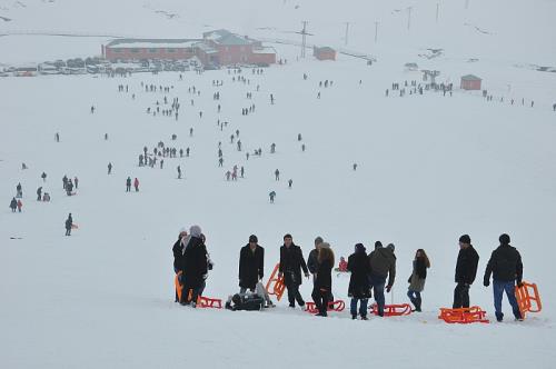 Kayak tesisinde hiçbir sıkıntının söz konusu olmadığını ve her birçok imkanın var olduğunu belirten işletmeci Olcay, şunları söyledi: “Kar yağışının giderek artması ayrıca kış turizmini daha da etkin kılmaya başladı. Şuanda kayak merkezimizde kar kalınlığı neredeyse 1 metreye yakın durumda. Gençlik Hizmetleri ve Spor İl Müdürlüğümüz sağ olsun düzenli bir şekilde mevcut pistleri bastırıp kayak merkezini daha da cazip hale getirdi. Tesisimiz haftanın 7 günü açık olup özellikle hafta sonu yoğun ilgiye neden oluyor. Hafta sonu mesaisini fırsat bilen herkes soluğu kayak merkezinde alıyor. Kayak malzemesi konusunda bizim eksiğimiz yok. Mevcut malzemelerimizin yanı sıra daha yeni 80 kişilik sıfır kayak takımları aldık. Her geçen gün daha çok ilgi gösteriliyor. Hafta içi yaklaşık bin kişiyi ağırlamaya başladık ve bu sayı inanılmaz derecede güzel. Hafta sonu ise bu bin ve üzeri bir sayıya çıkıyor. Gerek tesis gerekse kayak pistinin en iyi şekilde hizmete sunulması için gayret ediyoruz. Evet, çok kar var ve kayak merkezimiz eksiksiz bir şekilde hizmet veriyor.”