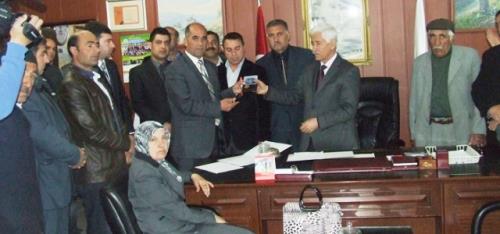 Muş`un Malazgirt belediyesinde devir teslim töreni yapıldı. 30 Mart´ta yapılan seçimlerde BDP´den belediye başkanı seçilen Halis Coşkun, koltuğuna oturdu
