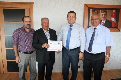 Varto Kaymakamı Tahir Şahin, İlçe Özel İdare Şefi Mehmet Arif Çelik´in yaptığı başarılı çalışmalarından dolayı takdir belgesi ile ödüllendirdi