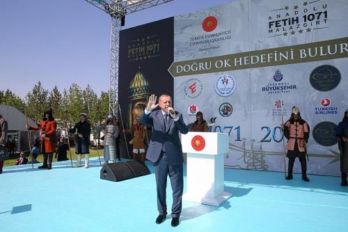 Her tümseğinin altında bir şehit yatma pahasına da olsa Türk milletinin bağımsızlığından ve namusundan vazgeçmediğini belirten Cumhurbaşkanı Erdoğan, “Tarihi öğrenmeyenler onu tekrar yaşamak zorunda kalırlar. Maalesef ülkemizde Malazgirt Zaferi uzun zaman ihmal edildi. Anadolu’daki varlığımızı, bin yıl önceki Malazgirt’i atlayıp Anadolu’daki zayıf bağlantılarla daha eskilere götürme çabası belki iyi niyetliydi, ama beyhudeydi. Malazgirt’i devleti yönetenler unutsa da bu millet unutmadı” dedi.