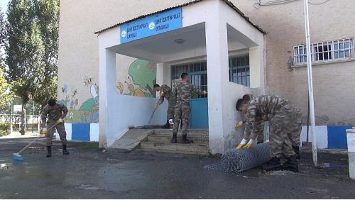 Öğrencilerin temiz ve daha güzel bir ortamda eğitim-öğretim görmesi için iş başına geçen Mehmetçik, ayrıca okulun çevre düzenlemesi ve birçok eksiğini de gideriyor. Mehmetçiğin yaptığı çalışmaları yerinde inceleyerek eğitime verilen desteğin çok önemli olduğunu belirten İl Milli Eğitim Müdür Vekili Metin Aksu, her şey güçlü yarınlar için olduğunu söyledi.