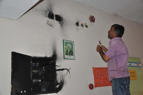 Muş merkeze bağlı Bağlar Köyü İlkokulunun ana halterdeki direğine elektrik çarpması sonrası okul içindeki elektrik panosu kullanılamaz hale geldi