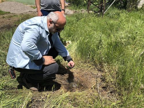 İki gün önce sabah kalktıklarında evlerinin bahçesinde duman ve sıcak suyun çıktığını fark eden Takyedin Tuğal ve ev halkı tedirgin oldu. Sıcak suyun çıkışı hemen Muş Alparslan Üniversitesi’ne bildirildi. Durumun öğrenilmesi üzerine Muş Alparslan Üniversitesi Afet Araştırma ve Uygulama Merkezi Müdürü Dr. Öğretim Üyesi İskender Dölek, araştırmaya başladı.
