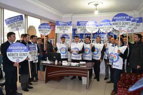 Barışan basın açıklamasında şu ifadelere yer verdi: “Kamu kurumlarında yapılan her nöbet görevinin bir karşılığı bulunmaktadır. Milli Eğitim Bakanlığı’na bağlı eğitim kurumlarında nöbet görevinin bir karşılığının olmamasının izah edilecek bir tarafı yoktur. Toplu sözleşme masasının yanı sıra Kasım 2013, Mart 2014 ve Kasım 2014 Kamu Personeli Danışma Kurulu toplantılarına da taşıdığımız ‘Eğitim kurumlarında görevli yönetici ve öğretmenlerce fiilen yerine getirilen nöbet görevi karşılığında, nöbet tutulan her gün için ek ders ücreti ödenmesi’ yönündeki talebimizin geçen süre zarfında karşılanması noktasında somut bir adım atılmaması üzerine haklı davamızda kamuoyu bilinci oluşturmak ve acil çözüm bekleyen sorunu konunun muhataplarının dikkatine sunmak amacıyla böyle bir kampanya başlattık. Angaryaya hayır diyor, nöbet görevi için ücret istiyoruz.”