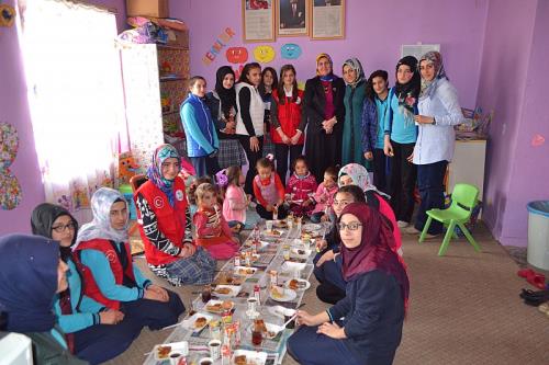 Muş Fatma Aliye Mesleki ve Teknik Anadolu Lisesi öğretmen ve öğrencileri, il merkezine bağlı Toprakkale Köyü Anaokulu öğrencilerine yardımda bulundu