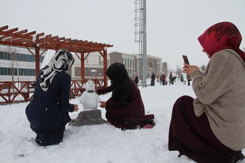 İlkokul ve ortaokul bahçelerinde kartopu oynayarak eğlenirken Muş Alparslan Üniversitesi’nde de öğrenciler kardan kadın, çocuk ve adam yaptılar. Kardan kadın yapan üniversiteli gençler, herkesin kardan adam yaptığını kendilerinin ise farkındalık oluşturmak için kadın yaptıklarını söylediler.