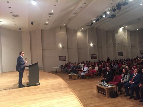 Daha sonra Muş Alparslan Üniversitesi Kültür, Sanat, Uygulama, Araştırma Merkezi, Sanat Yönetmeni Gülay Şeker Özsoy; Öğretmenlik mesleğinde, değerler ve etik konularında ve etkili iletişim, beden dili ve diksiyon konularında sunum yaptı. Özsoy; Özellikle iletişimin öğretmenlerimiz açısından öneminden ve beden dilinin sağlıklı iletişimde ne kadar önemli olduğu konuları ile ilgili bilgi verdi.