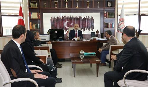 Muş Alparslan Üniversitesi Rektörü Prof. Dr. Fethi Ahmet Polat, Kütüphane ve Dokümantasyon Dairesi Başkanı Mumtaz Aras ve daire personelini makamında kabul etti