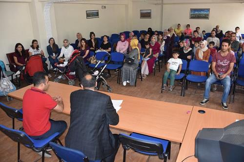 Hava kirliliğini en aza indirmek için ellerinden geleni yaptıklarını vurgulayan Aksu, “Okulumuzda ileriki dönemlerde doğalgaza geçecektir. Bu büyük ve ödenek isteyen bir iştir. Biz bunlara ağırlık verdik. Küçük onarımları da eğitim süreçleri arasında halledeceğiz. 15-20 yıl öncesine baktığımızda idealist bir öğretmenin kuşağı vardı. Sadece belli bir zaman aralığında okula gelip gidip görevim bitti evimde rahat edeyim düşüncesi yoktu. Mesai saatleri dışında da öğrenciler ile ilgilenen dertleriyle dertlenir sıkıntılarıyla ilgilenirlerdi. Bizim de böyle olmamız gerekir. Bu çocuklar, bu öğrenciler bizim çocuklarımız. Bizim dava bilinci ile bunlara yaklaşmamız lazım. Çocuklarımıza annelik, babalık yeri geldiğinde doktorluk yapacağız. Ne gerekiyorsa biz bu çocuklar için yapmalıyız. Eğitim öğretim faaliyetleri sadece okulla sınırlı değildir. Hafta sonları öğretmenlerimiz verileri ziyaret etmeli ya da aileler öğretmenleri ziyaret etmelidirler. Beraber piknikler gerçekleştirmelidirler. Biz bu şekilde kazanacağız yoksa başkaları bu öğrencileri kazanır ve önümüze bomba olarak çıkarlar. Sizden ricam bu mesleği dava haline getiren idealist öğretmenler olun. Eğer siz sadece belli bir süre içerisinde bir görev olarak görürseniz benim görevim buradan sonra bitmiştir derseniz bu şekilde yürümez. Mesai dışı özveride, fedakarlıkta bulunmalıyız. Gerekirse aileler ve öğretmenlerin öğrencilerle beraber okulda, sınıfta temizlik yapmaları gerekir. Bunun ayıbı yok. Öğrencilere uygulamalı olarak değerlerimizi öğretmeliyiz. Onları bilinçli bir nesil olarak yetiştirmeliyiz. Öğrencilerimiz bizim geleceğimizdir. Onun için onlara değer vermeli onlar için gereken eğitimi vermeliyiz” şeklinde konuştu.