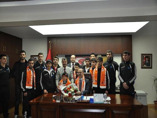 Muş Valiliği Koordinasyonunda Sosyal Destek Programı (SODES) kapsamında Muş Lalezar Spor Kulübü tarafından yürütülen Durmak Yok Eğitim ve Spora Devam´ projesiyle Antalya gezisine katılan kursiyerler gezi dönüşünde Vali Vedat Büyükersoy´u makamında z
