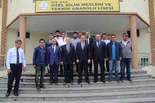 Vali Yavuz, OSB Özel Bilim Mesleki ve Teknik Anadolu Lisesi Müdürü Haşmet Turan, öğretmen ve öğrenciler tarafından karşılandı. 2015-2016 eğitim öğretim yılında hizmet vermeye başlayan okulda gezi ve incelemelerde bulunan Vali Yavuz, okulun son derece modern olduğunu söyledi. Ülke genelinde olduğu gibi Muş’ta da çalışmalara hız verildiğini ifade eden Vali Yavuz, “Daha yeni faaliyete geçen bu eğitim kurumumuzda 380 öğrenci ve 25 öğretmen olduğunu öğrendim. Son derce modern bir eğitim kurumu inşa edilmiş. Hepinizin bildiği gibi bizim en çok önem verdiğimiz sektörlerinden bir tanesi eğitimdir, yani insana, insanlığa yatırımdır. Bu nedenle eğitim altyapısını ve fiziki şartlarını tamamlamak için ülke genelinde olduğu gibi ilimizde de çalışmalarımıza hız veriyoruz. Şu anda ilimizde derslik başına düşen öğrenci sayısı 26’dır. Bu sayı Türkiye ortalamasının altındadır” dedi.