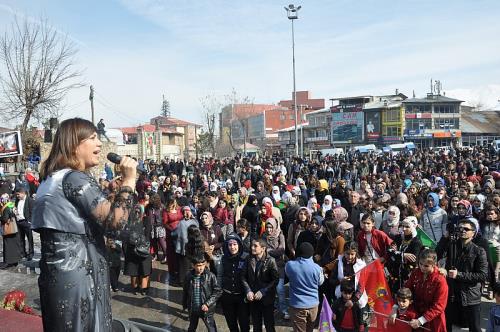 HDP Muş İl Eşbaşkanı Elif Çetinbaş burada yaptığı konuşmada, “Kobani ve Şengal`in direniş ruhu ve gücüyle, yüzyıllardır sömürü altında olan Ortadoğu halklarının barış özlemlerine cevap olacak şekilde 8 Mart Dünya Emekçi Kadınlar Günü`nü Kobani`de direnen kadınla örgütlenelim, yaşamı özgürleştirelim şiarı ile kutluyoruz” dedi.