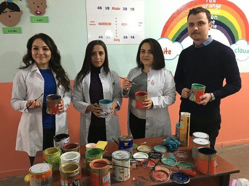 Okul boyaması ve eğitsel çizimleri yapan öğretmenlerin resim öğretmeni olmadığını kaydeden Sınıf Öğretmenlerinden Hatice Yıldız, sözlerini şöyle sürdürdü: “Hiçbirimiz resim öğretmeni değiliz hani bu alanda da hiçbirimizin daha önce böyle bir eğitimi yoktu. Elimizden geldiği kadarıyla ufak tefek hataların olmasına rağmen yapmaya çalıştık. Çizimleri, tasarımı ve boyaları kendimiz yaptık. Sonuç olarak öğretmen demek sadece derse girip çıkmak değildir. Öğrencilerimize her anlamda gerek teneffüslerde gerekse okul dışında olsun eğitim öğretim alanında desteklememiz gerekirdi bizde bunu amaçladık.”