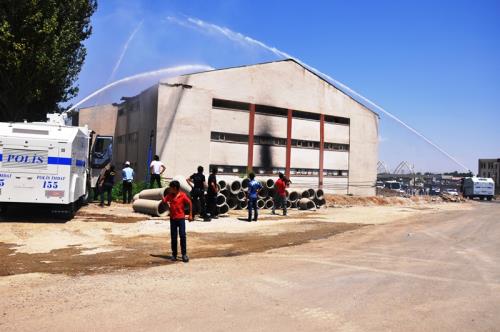 Muş Sanayi Merkezi`nin (MSM) çatı katında çıkan yangın saatler sonra kontrol altına alındı. İtfaiye ekipleri yetersiz kalınca Polis, Toplumsal Olaylara Müdahale Aracı (TOMA) ile müdahale etti