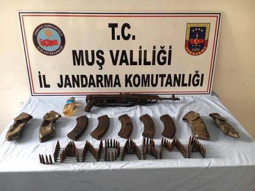 Muş Jandarma Komutanlığı’na bağlı birlikler tarafından yapılan arazi aramasında terör örgütü PKK`ya ait mühimmat ele geçirildi. Operasyon ile ilgili Valilik yazılı bir açıklama yaptı. Valilikten yapılan açıklamada, İl Jandarma Komutanlığına bağlı ekipler tarafından merkeze bağlı Suluca köyü Başak mezrası bölgesinde `Şehit Jandarma Üstçavuş Serdal Uyanık-2017-92` operasyonu yapıldığı belirtildi. Operasyon kapsamında 20 Eylül 2017 günü arazi arama tarama faaliyeti yapıldığı ifade edilen açıklamada, “Yapılan arazi arama tarama faaliyetinde 1 adet Kaleşnikof tüfek, 150 adet Kaleşnikof tüfeğine ait fişek, 5 adet Kaleşnikof tüfeği şarjörü, 4 adet kütüklük, 1 adet palaska, 1 adet pet şişe içerisinde silah bakım yağı ele geçirilmiştir. Olayla ilgili adli işlemlere başlanmıştır” denildi.