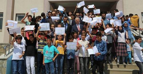 Vali Aziz Yıldırım, öğrencilere karnelerini dağıtarak yakından ilgilendi. Öğrencilere tavsiyelerde bulunarak büyük emekler sarf ettiklerini ifade eden Vali Yıldırım, “öğrenciler, bugün bir eğitim öğretim yılının daha sonuna geldik. Bu süre içerisinde hepiniz büyük emek sarf ettiniz bugün de karne sevincini yaşamaksınız. Sevgili gençler, yaz tatili süresi çok uzun, bu süre içerisinde hem eğlenebilir, oyun oynayabilirsiniz hem de kendinizi geliştirebilirsiniz. Bu zamanı çok iyi değerlendirin ve bol bol kitap okuyun. Bu duygu ve düşüncelerle hepinizi bir kez daha tebrik ediyorum ve sizlere iyi tatiller diliyorum” dedi.