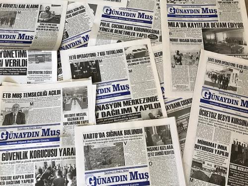 Okurlarıyla buluştuğu ilk günden bu yana doğruluk, tarafsızlık habercilik anlayışıyla vatandaşları bilgilendiren Günaydın Muş Gazetesi, ilkeli haberleriyle de okurlarının takdirini kazanmaya devam ediyor. Bugün kent merkezinin tamamında günlük olarak dağıtımı yapılan gazeteniz Günaydın Muş, sizlerin de desteğiyle gelecek için kentin tek sesi olmayı hedefliyor. Muş halkına en iyi şekilde hizmet etmeyi amaç edinen Günaydın Muş Gazetesi, sayfa sütunlarına taşıdığı haberleriyle Muş’un ilçelerinin de sesi olmaya devam ediyor. İlkeli habercilik anlayışından ödün vermeden yoluna emin adımlarla ilerlemeye devam eden Günaydın Muş Gazetesi, güçlü ve dinamik kadrosuyla 11 yılı geride bırakarak, sizlere en güncel haberleri aktarmaya devam ediyor.