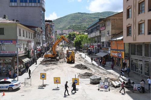Atatürk Bulvarı İstasyon Caddesi Peyzaj Projesi kapsamında Muş Belediyesi hizmet binaları önünden başlayan kazı ve döşeme çalışmaları aralıksız devam ediyor