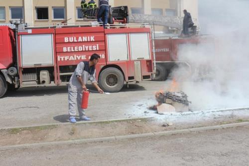 Bulanık Devlet Hastanesi’nde yangın söndürme, mahsur kalan hastaları kurtarma, yaralıları bir başka sağlık kuruluşuna sevk etme gibi pratiklerin kazanılması, personel ve donanımların gözden geçirilmesi amacıyla tatbikat yapıldı. Acil servisteki temsili yangın üzerine harekete geçen ilk yardım ekibi, itfaiyeden yardım isteyerek ilk müdahaleyi yaptı. Senaryo gereği yangın alanına gelen itfaiye ekipleri, alevleri kısa sürede söndürdü.