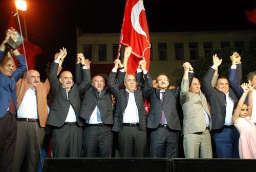 Yapılan konuşmalardan sonra Vali Yavuz ve tüm protokol üyeleri ile siyaset parti temsilcileri ile platformda halkı selamladı. Selamlamadan sonra Kur’an-ı Kerim tilaveti ve verilen konser ile miting devam etti.