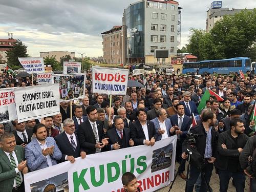 ABD’nin Tel Aviv büyükelçiliğini Kudüs’e taşıması ve İsrail askerlerinin Gazze sınırında düzenlenen gösterilere katılan 59 Filistinliyi şehit edip 2 bin 770´den fazla Filistinliyi yaralamasına ülke genelinde olduğu gibi Muş’tan da tepki gösterildi.