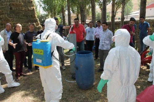 Eğitim kapsamında Palandöken İlçesi Tepeköy mahallesinde yapılan demonstrasyon çalışması ile etkeni yok edici ve bulaşmayı engelleyici önlemlere ilişkin tatbikat gerçekleştirildi. Tatbikata Hayvan Sağlığı Şube Müdürü Cengiz Ceylan ve Palandöken İlçe Gıda Tarım ve Hayvancılık Müdürü Metin Yiğit ve Veteriner hekimler katıldı. Eğitim sonunda başarılı veteriner hekimlere sertifikaları dağıtıldı. Bu süreçle birlikte, bölgede olası bir kuş gribi vakasında akredite bir ekip oluşturuldu.
