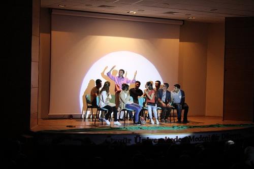 Ümit Alkan ve Veli Yeşil, toplulukta aldıkları eğitimin ve kendilerine gösterilen ilginin bir aile ortamı gibi olduğunu belirttiler. Kendilerine bu imkanı sunan Muş Alparslan Üniversitesine ve danışman hocalarına teşekkür eden mezunlar, 3 yıldır Gösteri Sanatları Topluluğunda uyumlu ve başarılı bir şekilde eğitimlerini tamamlayarak belgelerini aldı. “Öğrenci Halleri” Oyununu sergileyen Gösteri Sanatları Topluluğu oyuncuları; Adnan Uğur, Alper Murat Kirpik, Fatma Arslan, Ferdi Yüceay, Hasan Yavuz, İpek Şen, Koçer Aslan, Mehmet Dayan, M. Rüstem Çakıcı, Muhammet Altun, Mine Yıldız, Ömer Saçar, Ramazan Sayhar, Ümit Alkan, Ümmügülsüm Koç, Veli Yeşil ve Zeynep Korkmaz, muhteşem bir performans gösterdiler. Salonu dolduran seyirciler, kahkahalar içerisinde ve büyük bir memnuniyetle oyunu seyrettiler.