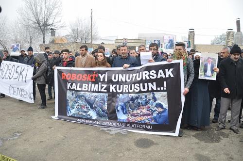 Belediye Meydanı’nda toplanan platform üyeleri adına açıklama yapan Demokratik Bölgeler Partisi(DBP) Muş İl Başkanlığı Yöneticisi Sinan Ertuğrul, Roboski’nin bir kan gölü olduğunu söyledi. Egemenler tarafından yazılan tarihin ve çizilen sınırların Kürt halkının yaşama yansıyan kısmının yoksulluk, katliam, kan ve gözyaşı olduğunu ifade eden Sinan Ertuğrul, tarihin Kürt’lerin mağdur edildiği yüzlerce katliamla dolu olduğunu belirterek, “Roboski de bunlardan biridir. 34 insanın vahşice katledildiği kan gölüne dönüşmüş köyün adıdır. Roboski, kendisine yoksulluk dayatılmış insanların bir türlü içe sığmayan sahte sınırları geçerek yaşamını sürdürecek bir işle meşgul olmasının adıdır. Kimi okul harçlığını çıkarmak, kimi o çok istediği elbiseyi alabilmek, kimi evinin üç-beş öteberi ihtiyacını karşılamak için uğraşıyordu. Öğretime imkânı olmayan bu insanlar, ya açlıktan ölecek ya da bir şekilde yaşamlarını sürdürecek bir şey bulacaklardı” dedi.