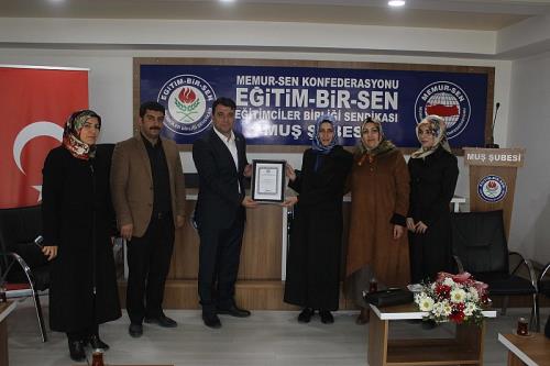 AK Parti Muş Kadın Kolları Başkanı Elif Gezen, Eğitimciler Birliği Sendikası (Eğitim-Bir-Sen) Muş Şube Başkanlığını ziyaret etti