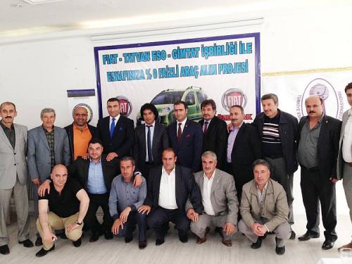 Tatvan ESO ve GİMTAT`in girişimleri sonucunda Fiat Bölge Bayi Özermak ile imzalanan protokole göre Tatvan ESO ve GİMTAT üyelerine Fiat Fiorino marka araçlar 5 bin 500 lira peşinat ve 30 bin lira tutarında 18 ay sıfır faizli kredi imkanıyla araç sahibi olma şansı sağlanıyor. Kampanyanın Tatvan`da düzenlenen tanıtım toplantısına GİMTAT Başkanı Muzaffer Güzeluçar, Tatvan ESO Başkanı Emrullah Tekin, Özermak Yönetim Kurulu Başkanı Muşlu işadamı Necip Büte, Özermak Satış Müdürü Yalçın Dirican ile Tatvan ESO ve GİMTAT yönetim kurulu üyeleri katıldı.