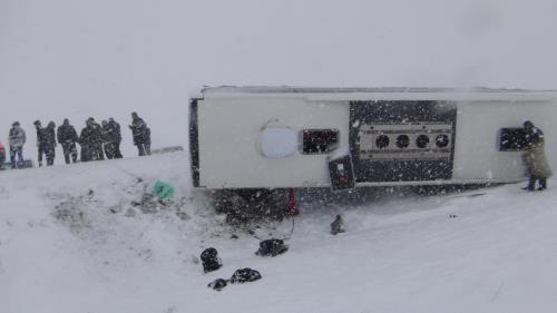 Muş`ta yolcu otobüsünün devrilmesi sonucu 29 kişi yaralandı