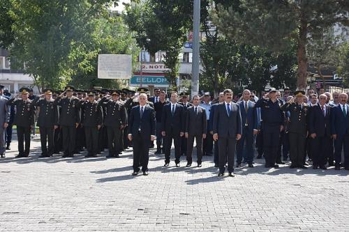 Yüzbaşı Düzgöl, konuşmasının devamında ise şunları söyledi: “Türkiye Cumhuriyeti, Ulu Önderimizin hedef gösterdiği muasır medeniyet seviyesine erişme yolunda dev adımlarla ilerlerken bu yükselişi sekteye uğratmak, vatan topraklarının bir kısmını ana yurttan ayırmak isteyen, dış güçlerle destekli vatan hainleriyle tavizsiz ve çelik bir irade ile mücadele etmiştir ve edecektir. Türk Silahlı Kuvvetleri bu onurlu mücadeleyi milletinden aldığı sonsuz güvenle sürdürmüş bu süreçte binlerce vatan evladı şehitlik ve gazilik mertebesine ulaşmıştır.