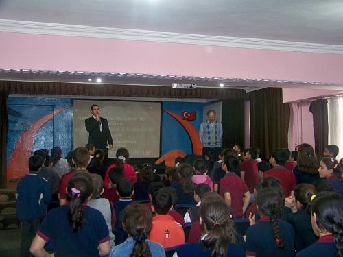 Milli Eğitim Vakfı Fatih Ortaokulu`nda başlatılan ‘Kitap Okuma Projesi, Her Aya Bir Yazar’ etkinliği çerçevesinde Nisan ayında eğitimci yazar Ali Erkan Kavaklı konuk etti. Kavaklı velilere ‘Ailede Eğitim’ öğretmen ve öğrencilere ise ‘Başarı Teknikleri ve Başarıya Giden Yol’ konularında seminer verdi. Seminerin açılış konuşmasını yapan Okul Müdürü Fatih Ekecik, Kavaklı’ya teşekkür ederek konuşmasına başladı. Ekecik, “Okulumuzda öğrencilere okuma alışkanlığı kazanmalarını sağlamak için ayda 2 kitap okumalarını sağlıyoruz. Öğrenciler okudukları kitapların diğer sınıf arkadaşının kitabı ile değişerek daha çok kitap okumasını sağlamaktayız. Bu projenin başarılı olması için okulumuz bünyesinde her aya bir yazar projesi uygulaması yapıyoruz. Öğrencilere okuma alışkanlığı kazandırmak, yazarları tanımak, eserleriyle tanıştırıp onların bilgilerinden yararlanmasını sağlamaktayız. Bu proje kapsamında okulumuza nisan ayı için gelen Eğitimci Yazar Ali Erkan Kavaklı`ya okulumuz adına teşekkür ederiz. Verdiği seminerle okulumuz veli öğrenciler ve öğretmenlere çok faydalı olmuştur ve yararlı olacağını düşünüyoruz” dedi.