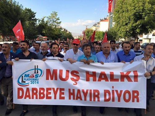 Kalkışmanın olduğu geceden itibaren Muş’ta meydanların hiç boşalmadığını ve aksine 1071 Malazgirt Zaferi ruhunun yeniden canlandığını kaydeden Vurar, “Kalkışmanın olduğu günden itibaren meydanlardayız.1071 Malazgirt ve Çanakkale ruhuyla sahadayız. 81 ilde alanları boş bırakmıyor, kanlı darbe girişiminin mimarları, tetikçileri ve senaristlerinden hesap sorulana kadar ayaktayız” dedi.