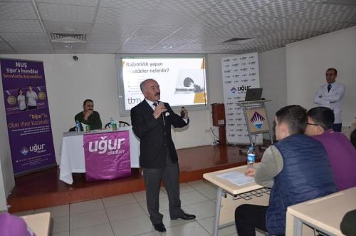 Özel Muş Uğur Temel Lisesi okul müdürü Bekir Gülsarı “özellikle eğitim-öğretim dönemlerinde hepimizin teyakkuz halinde olmamız gerektiren, gençlerimizi ve doğal olarak da toplumun ve ülkemizin tümünü, geleceğimizi yakından ilgilendiren zararlı alışkanlık ve bağımlılıklara karşı öğrencilerin bilinçlendirilirken, diğer yandan aynı bireylerin sosyolojik buhranlara sürüklenerek gelecekte benzer tuzaklara düşmesini önleyebilmek amacıyla, toplumumuzda insan ilişkileri ve aile yapısında görülen dejenerasyonları telafi etmeye yönelik hazırlanan bir program olduğunu” belirtti.