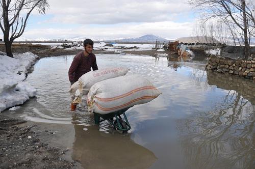 Evinin önüne kadar gelen sel sularından dolayı korktuklarını kaydeden Ramazan Yiğit, “Su biraz daha yükselirse benim evimin içine girecek. Çocuklarımın oynayacak bir yeri yok. Çocuklar her an suya girebilirler” şeklinde konuştu. Su baskınından dolayı karda yayalar için yol açan İhsan Çağlayan ise “Kar eridi ondan dolayı sular yükselmeye başladı. İnsanlar geçemiyor” dedi.