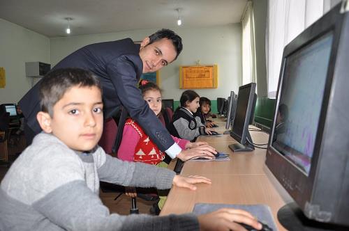 İlkokul 1. Sınıftan 4. Sınıfa kadar minik öğrencilerin bilgisayarla tanışması ile ilgili bilgilendirmede bulunan 75. Yıl Merkez İlköğretim Okul Müdürü Vedat Beyazduman ise: “bizim bilgisayar laboratuvarımız vardı ve birçok eksiğimiz vardı. Sene bağışında bilgisayar öğretmenimizin atanması ile çalışmaları başlattık. Şuan 21 adet bilgisayarımız çalışır durumda ve internet ağımız var. Müfredata göre ilkokulda normalde bilgisayar dersi yok. Birinci sınıftan 4. Sınıfa kadar böyle bir dersimiz yok. Malum 5 saatlik serbest etkinlik dersimiz var. Öğretmenlerimizle birlikte yaptığımız toplantı neticesinde 1. Sınıftan 4. Sınıfa kadar öğrencilerimizin bilgisayarla tanışmaları için ve güvenilir internet kullanımı ile öğretmenimizin gözetiminde ders veriyoruz. Haftada en az bir saat öğretmenin ders saatine göre bilgisayar dersi veriliyor. Bu vesileyle öğrencilerimiz bilgisayarla tanışmış olup interneti nasıl kullanacaklarını öğrenmiş oluyorlar” dedi.