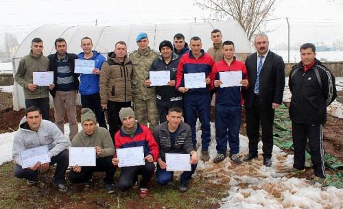 4 yıldır devam eden kurslarda şu ana kadar 250 askere mesleki eğitim verip sertifika sahibi yaptıklarını dile getiren Kartal: “Soma olaylarından sonra İş Güvenliği kanunları kapsamına da giriyor aslında seracılık. Şu ana kadar 250 öğrenci mezun ettik. Bunlardan şöyle dönüşler almak bizi mutlu ediyor, gittikleri yerlerde telefon açıp diyor ki bazı arkadaşlar; ‘Biz iş başvurusunda bulunduk seracılık yapan yerlere. Bizden belge istediler ve biz bu belgeyle gidip işe yerleştirildik. Aynı zamanda bir meslek kazandırıyoruz askerlerimize” dedi.