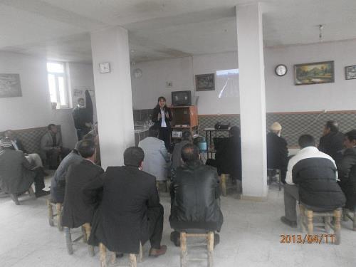 Korkut İlçe Gıda, Tarım ve Hayvancılık Müdürlüğü ekipleri, Altınova Beldesinde çiftçilere yönelik faaliyetlerde bulundu. Hayvan bakımı ve besleme, toprak tahlili ve tarım sigortaları hakkında çiftçilerin bilgilendirildiği faaliyette yoğun ilgi gösterildi. Yapılan bilgilendirme faaliyetine Altınova Tarım Danışmanı Ziraat Mühendisi Hakan Kalenderoğlu, Teknik personellerinden Ziraat Mühendisi Sevgi Kahvecioğlu, Veteriner Hekim Kürşad Kaymak, Veteriner Hekim Fatih Turgut ve Veteriner Sağlığı Teknisyeni Kürşad Duyar katıldı. Altınova Beldesi belediye’ye hizmet binasında gerçekleştirilen toplantıda 2013 tarımsal desteklemeler ile ilgili sinevizyon gösterileri ile teorik bilgiler verildi. Süt ineklerinin bakım ve beslenmesi konusunda bilgi veren veteriner hekimler; “Gebeliğin ilk aylarında özel bir bakım gerekmez. Aşırı besleme yarar getirmez. Yetersiz besleme durumunda hayvan zarar görür. Gebeliğin son 2-3 ayında diğer hayvanlardan ayrılmalı, özel bir bölmeye konmalıdır. Böylece diğer hayvanlar tarafından boynuzlanmaz, sıkıştırılmaz, rahatsız edilmez. Ahırın zemini ıslak ve kaygan olmamalıdır. Hayvanın altına bolca temiz ve kuru yataklık ot koymalıdır. Doğuma yakın zamanda gürültü olmamalıdır. İneğin sütünü sağmaktan vazgeçerek sütünün kesilmesini sağlamaya kuruya alma denir. Doğurmasına 2 ay kalan ineklerin sağımdan kesilmesi gerekir. Çünkü 10 ay sürekli sağılan hayvan yorulmuştur. Süt yapan organların dinlenmesi gerekir. İnek yediği gıdayı süt verimi yerine karnındaki yavrunun gelişmesine kullanmış olur. Sürekli sağım nedeniyle kaybettiği mineral maddeler vücudunda tekrar biriktirmek için zaman verilmiş olur. Uzun süren sağım nedeniyle vücut yapısı bozulmuştur. Dinlenme döneminde vücut yapısı düzelerek normal doğum yapmaya imkan verir. Kuru dönem geçiren ineklerin, sonraki sağım döneminde daha çok süt verdikleri görülmektedir. Gebeliğin 7. ayından itibaren günde 8-10 kilo süt veriyormuş gibi yemlenmesine özen gösterilmelidir. Doğuma yaklaşık 3-4 hafta kala günlük kesif yem miktarı yavaş yavaş artırılmalı ve inek yeni süt verim dönemine hazırlanmalıdır. Gebeliğin son döneminde aşırı kaba yem verilmemelidir.”